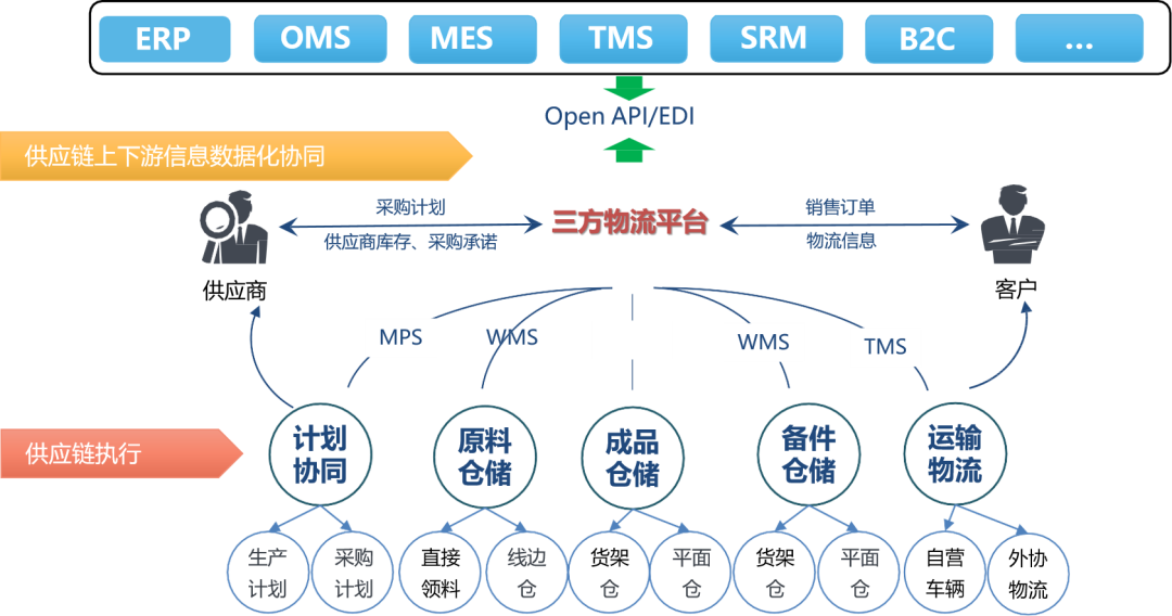 WMS需集成的异构系统可分为企业级系统、供应链协同系统和生产执行系统三类,典型场景如下: